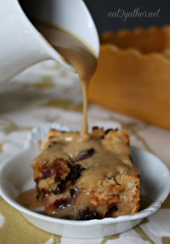 Cherry Chocolate Chip Bread Pudding with Maple Cream Sauce