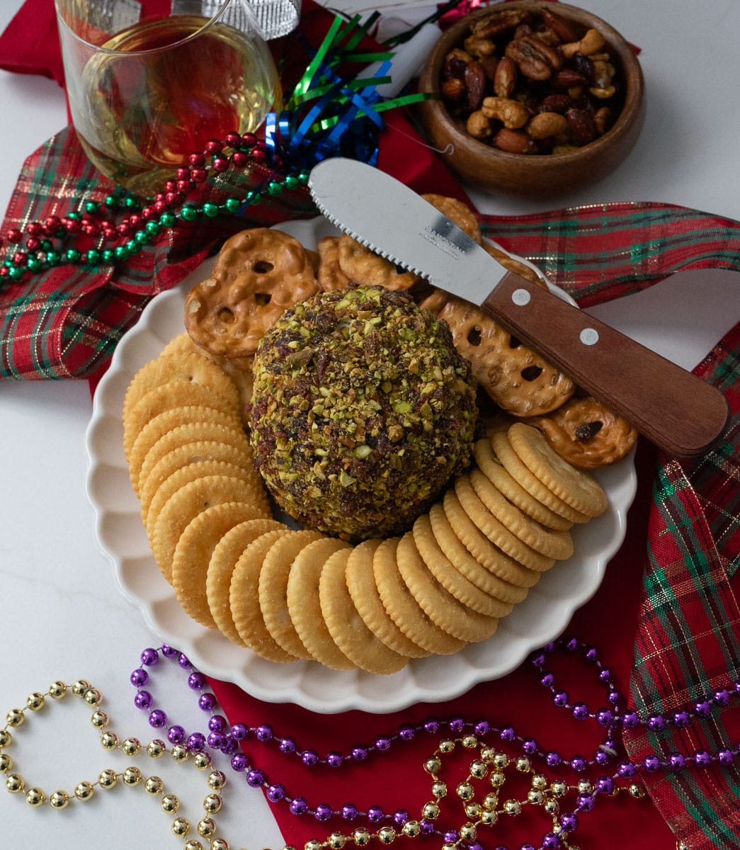 The sweetness of the cranberries and the salty pistachios are the perfect combination with the savory creamy cheese. you can also make this into a cranberry pistachio cheese log if you wish! Ball or log it’s going to get eaten. I mean if you want to get really creative you could shape this into Santa Claus!