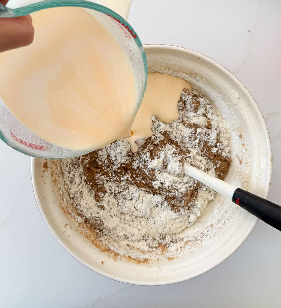 Mix thoroughly. Alternating back and forth until all of the buttermilk and flour have been added to the bran.